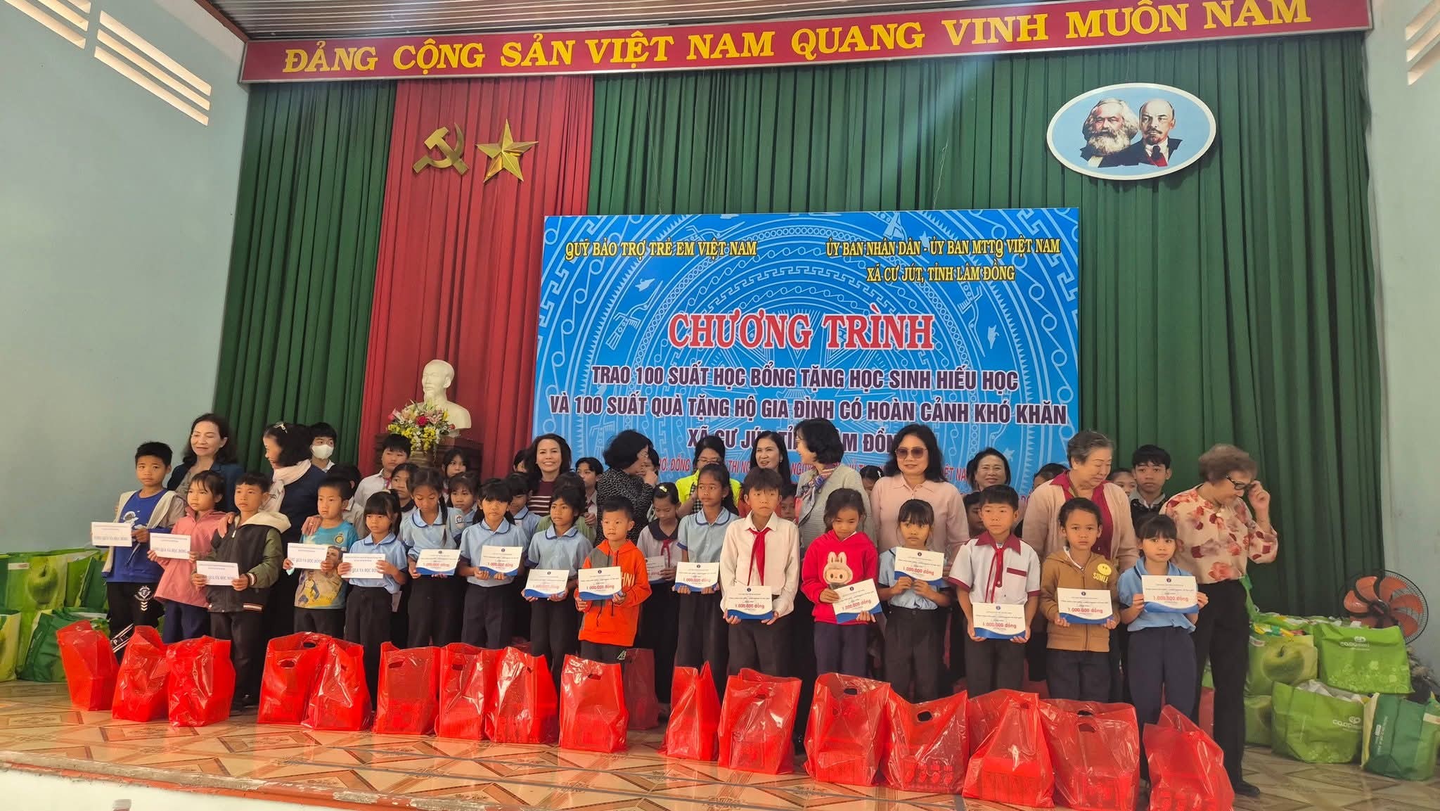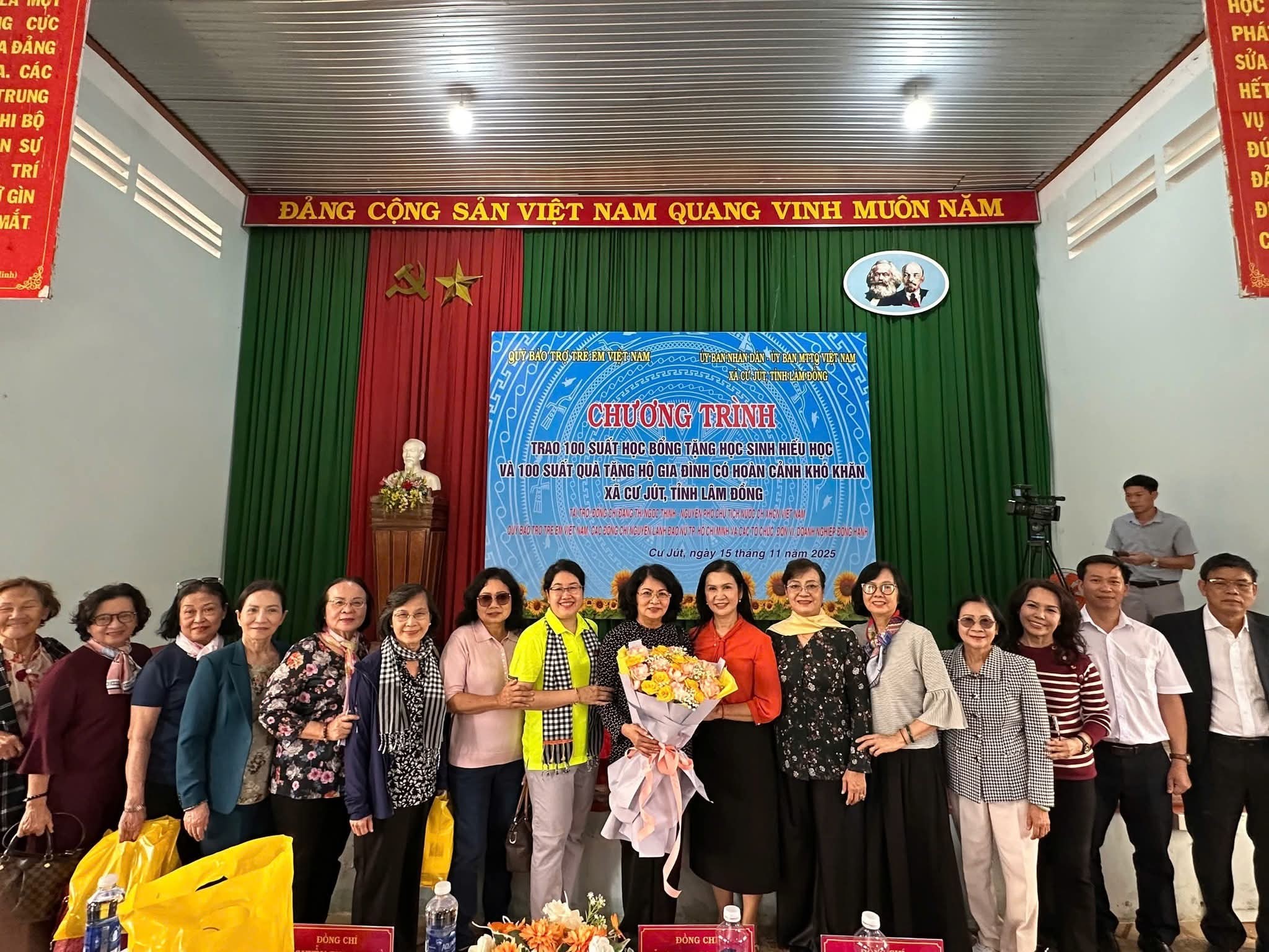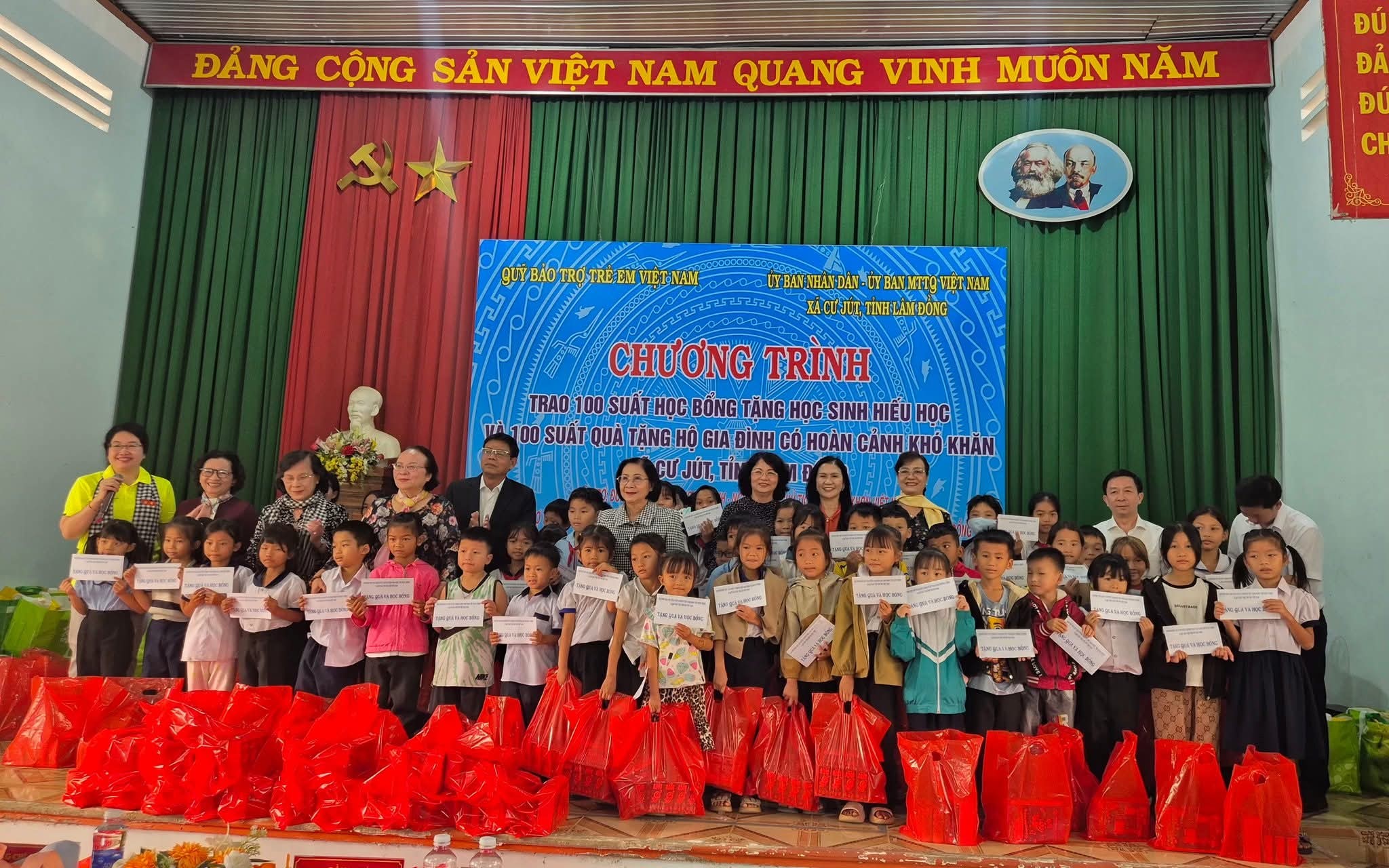 Ngày 15/11/2025 Ban Thường trực Ủy ban MTTQ Việt Nam xã Cư Jút phối hợp với UBND xã; Hội Khuyến học tỉnh Lâm Đồng; Đoàn thiện nguyện đến từ TP Hồ Chí Minh; Đại đức Thích Đức Thiện- Điểm nhóm tôn giáo(Phật giáo).. trao 100 suất học bổng cho học sinh nghèo hiếu học và 400 suất quà cho hộ gia đình có hoàn cảnh khó khăn trên địa bàn, tại địa điểm Trung tâm Chính trị xã Cư Jút.