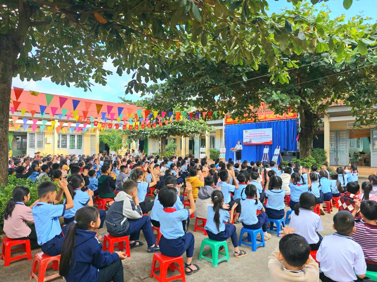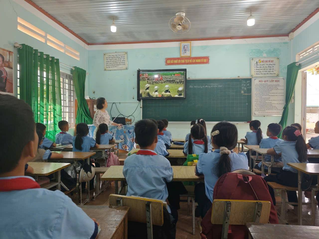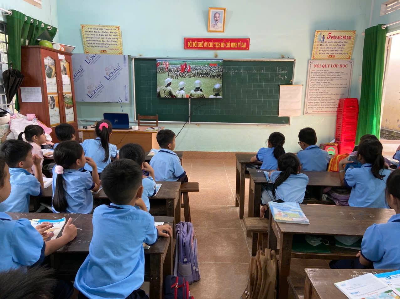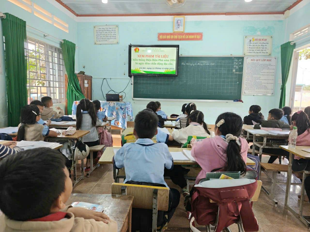 Chương trình diễn ra với sự tham gia của lãnh đạo nhà trường, tập thể GV,NV và 342 em đội viên, thiếu niên nhi đồng. Các em được lắng nghe thầy Hiệu trưởng nhà trường ôn lại truyền thống hào hùng, bất khuất của Quân đội nhân dân Việt Nam; các bạn kể chuyện về người anh hùng dũng cảm Bế Văn Đàn-lấy thân mình làm giá súng; vẽ tranh; biểu diễn văn nghệ và phát biểu cảm nghĩ về ngày 22/12; kết thúc chương trình các em cùng hát vang bài “Như có Bác Hồ trong ngày vui đại thắng” sáng tác Phạm Tuyên. Bên cạnh đó, các em còn được xem phim tài liệu về “Chiến thắng Điện Biên Phủ 1954- 56 ngày đêm chấn động địa cầu” (các lớp tổ chức xem phim tài liệu vào giờ ra chơi)