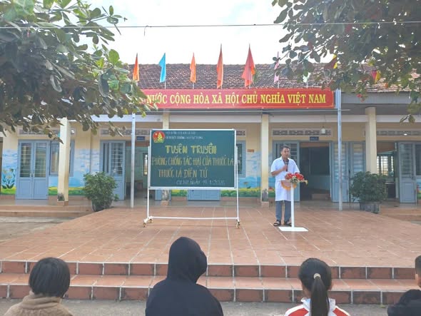 Buổi tuyên truyền được nhân viên y tế nhà trường tổ chức nhằm nâng cao nhận thức cho cán bộ, giáo viên và học sinh toàn trường về tác hại của việc sử dụng thuốc lá và thuốc lá điện tử xâm nhập vào môi trường học đường. Thông qua hình thức trò chuyện, giao lưu hỏi – đáp sinh động, các em học sinh đã được nghe giới thiệu, chia sẻ những kiến thức bổ ích về ảnh hưởng của thuốc lá điện tử, thuốc lá đối với sức khỏe, đặc biệt là các tác hại nghiêm trọng đến phổi, tim mạch, hệ thần kinh và sự phát triển của lứa tuổi học đường. Nhiều em học sinh hào hứng tham gia phần hỏi – đáp, thể hiện sự hiểu biết và thái độ rõ ràng trong việc nói “không” với các sản phẩm thuốc lá gây hại.